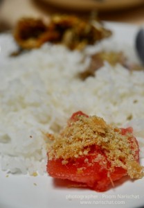 อาหารที่ทำล้วนเป็นเมนูง่ายๆ วัตถุดิบที่มีอยู่ในท้องถิ่น แต่ทุกจานล้วนเป็นอาหารที่คุณ ‘รงค์ ชื่นชอบและทานเป็นประจำ พิเศษตรงที่ปรุงโดย ป้าติ๋ม และถ้าไม่ยุ่งมาก ป้าติ๋มจะมานั่งคุยด้วยกันกับทุกคน ได้อารมณ์เหมือนไปทานข้าวที่บ้านญาติผู้ใหญ่เลยทีเดียว